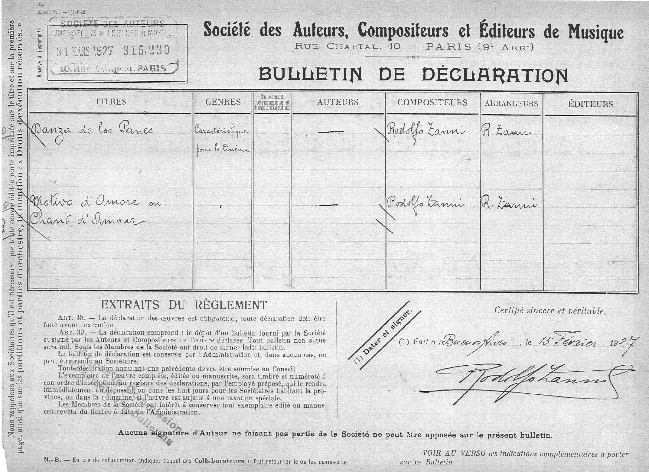 Abbiamo la prova che le sue performances ottenevano un successo mai visto, che gli spettatori correvano agli spettacoli più per ascoltare la sua musica che per vedere il film in programma. Le locandine trovate fanno stato che i caratteri tipografici (che sono la spia della notorietà e del gradimento presso il pubblico) riferiti a Rodolfo Zanni, erano più grandi e appariscenti di quelli dei protagonisti dei film che erano dei divi molto rinomati, come per esempio John Barrymore nel film “When a man loves” (in spagnolo “Vagabundo de Amor”).